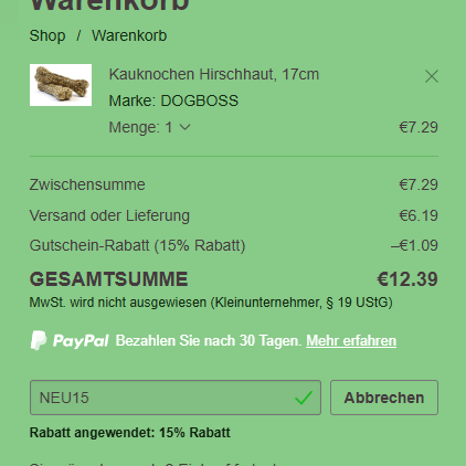 Hiermit spart ihr 5 % auf die gesamte Bestellung ab einem Einkaufswert von 15€
